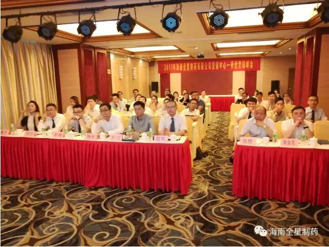 2017年4月8日-9日,海南全星制藥有限公司在??趯汃x大酒店召開2017年一季度營銷峰會。會議由公司營銷中心副總經理張煜先生主持,公司營銷中心總經理殷明先生、財務總監韓麗女士、營銷總監兼市場總監楊永先生、營銷總監關一文先生、營銷中心全體同仁和質量部同事及各省省區經理出席了本次會議。